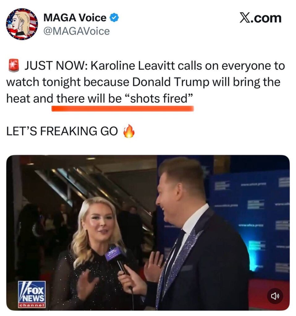 GERADE GERADE: Karoline Leavitt ruft alle dazu auf, heute Abend zuzuschauen, weil Donald Trump richtig Gas geben wird und es „Schüsse hageln“ wird
